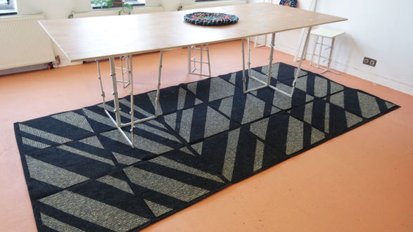 I had the opportunity to designed and supervise workshops to make the softnings and carpets for the shared community spaces at the museum located at the old USA ambassy of The Hague. An extra creation i brought in is Macrame with old textile Lamelle. I am full of re-furnished ideas!
